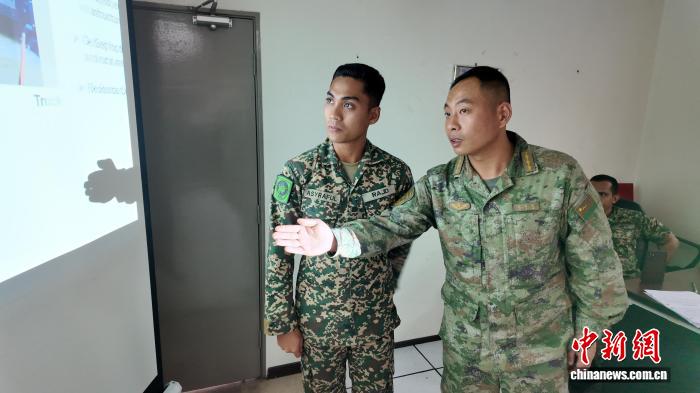 在介绍中的抗洪救援经验中,中方官员杨泰结合自身抗洪救援任务经验,讲解了作战理念,从准确识别灾害的情报研判、有效救灾的装备保障、有效应对灾害的人员培训等方面指导参训马来西亚官兵。得到了参赛马来西亚官兵的一致好评。 《如何快速出兵抢占救援时机》《如何保证救援》灾民在最短的时间内撤离”……沟通过程中,中方官兵耐心解答马来西亚官兵提问,将中马友谊深入沟通。
